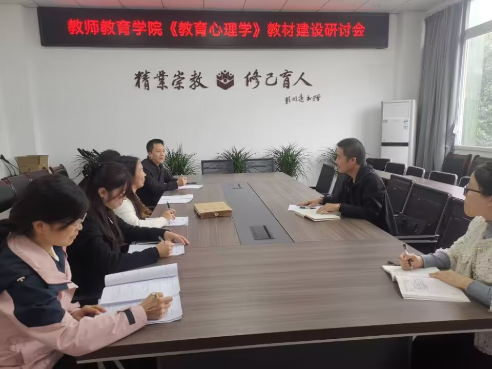 为积极响应学校校级教材专项建设工作要求,促进教师教育课程教材更好满足学生学习需要,2024年11月8日,教师教育教研室在博文楼206会议室召开《教育心理学》教材建设研讨会。教务处副处长、项目主持人周波、教师教育教研室主任刘华,项目参与人王冬梅、甘在燕、田林、赵娟等老师参与了本次研讨会。