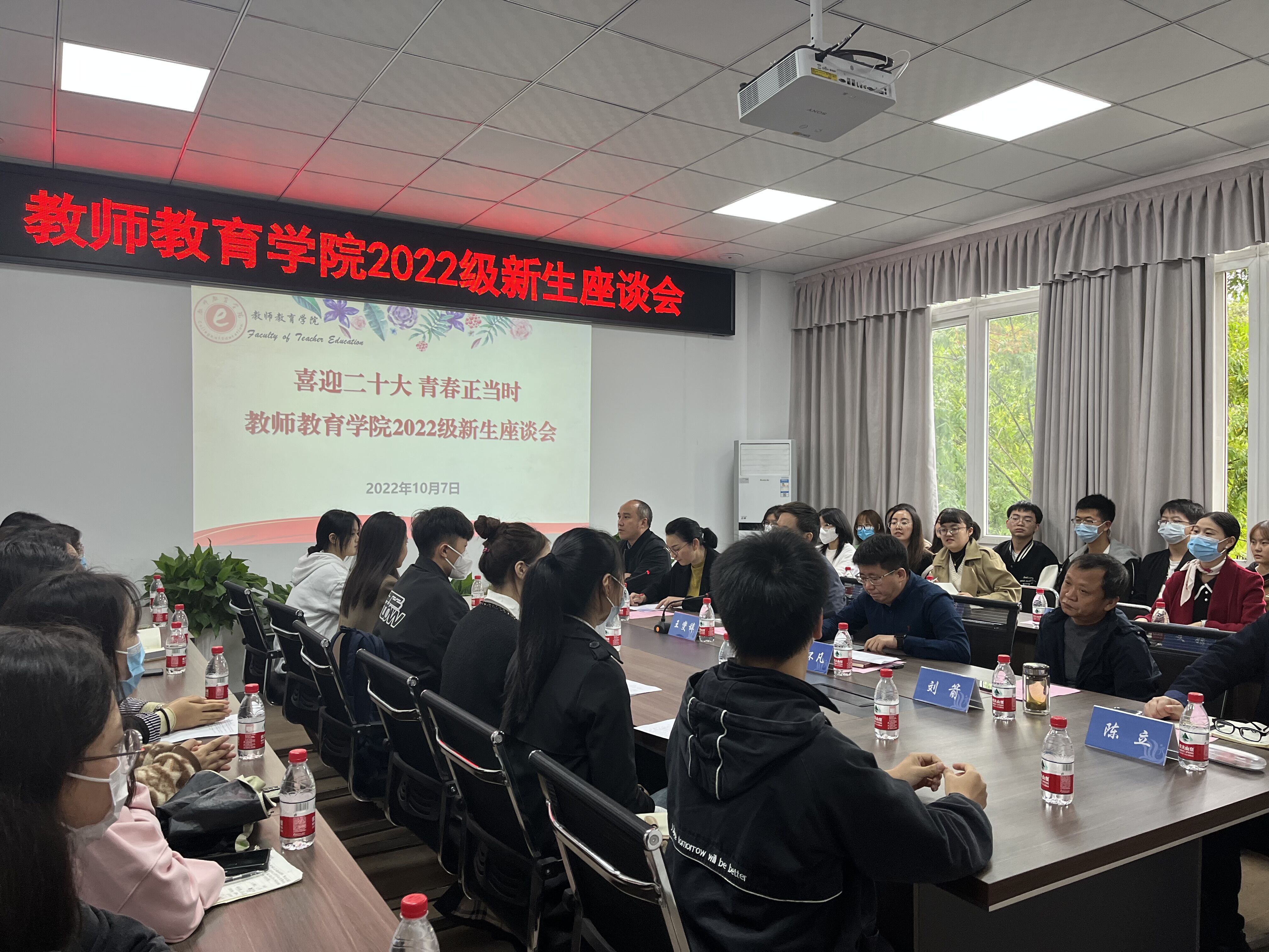在座谈中,各位老师结合自身的人生经历与新生们谈心交流,共话成长。希望新同学们做好人生规划、广泛阅读、多沟通、多交流,顺利完成角色转变,早日融入文理生活。