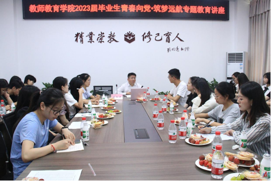 为持续做好毕业生教育、管理与服务工作,引导毕业生坚定理想信念、明确奋斗目标、科学规划人生,强化毕业生不负韶华、不负时代、不负人民的使命担当,2023年6月13日,金年会在会议室举行2023届毕业生“青春向党·筑梦远航”专题教育讲座。此次讲座由院长叶怀凡主讲,专职辅导员洪双、赵会辉、魏靖、杨文明及毕业班代表到场学习聆听。本次讲座采用线上线下的方式进行。