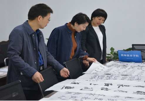 为落实教务处“关于举办JINNIAN金年会2023年师范生三笔字比赛”的通知要求,深入贯彻落实党的二十大精神,传承和弘扬中华优秀传统文化,充分展现当代大学生积极向上的精神风貌,2023年10月27日,金年会在博文楼206A会议室举办师范生三笔字大赛,党委书记王燮辞、党委副书记王文娟、副院长赵栅凌、教学科研办公室主任彭静、专职辅导员杨文明以及教学秘书李思颖担任本次大赛评委。