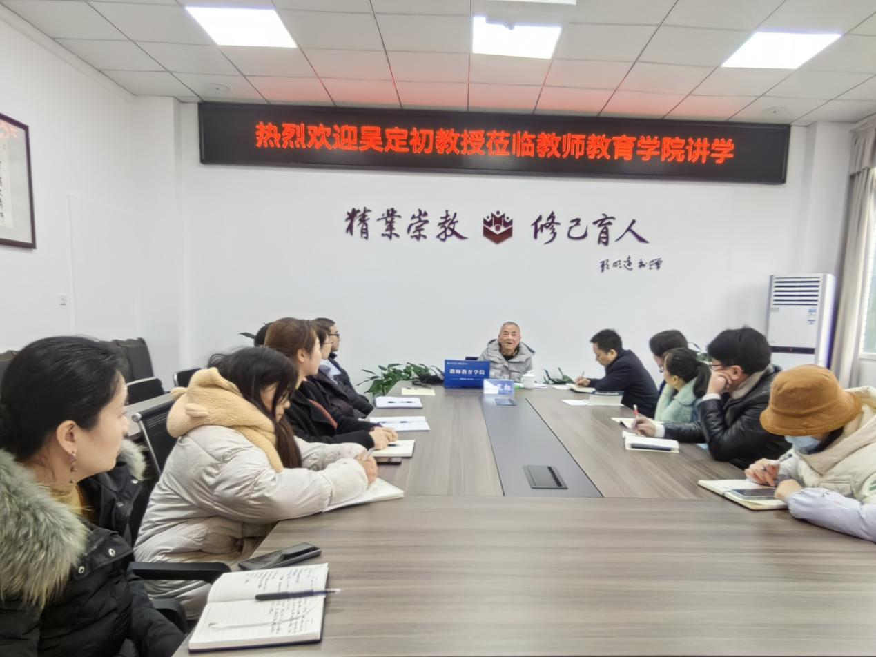 为进一步推进学院学科建设创新发展,12月18日下午,四川师范大学教育科学学院博士生导师吴定初教授出席了金年会学科建设座谈交流会。座谈交流会在博文楼206会议室举行,会议由党委副书记王文娟主持,学院学科带头人、教研室主任及部分师生参加了指导会。