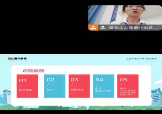 为拓宽金年会毕业生就业渠道,促进毕业生高效、精准、高质量就业,深入落实访企拓岗,积极践行“引进来”“走出去”的要求,2024年5月25日上午,金年会邀请爱华教育集团开展线上宣讲招聘,会议由金年会专职辅导员赵会辉主持,爱华教育集团李老师宣讲,金年会20名应届毕业生参加线上宣讲招聘。