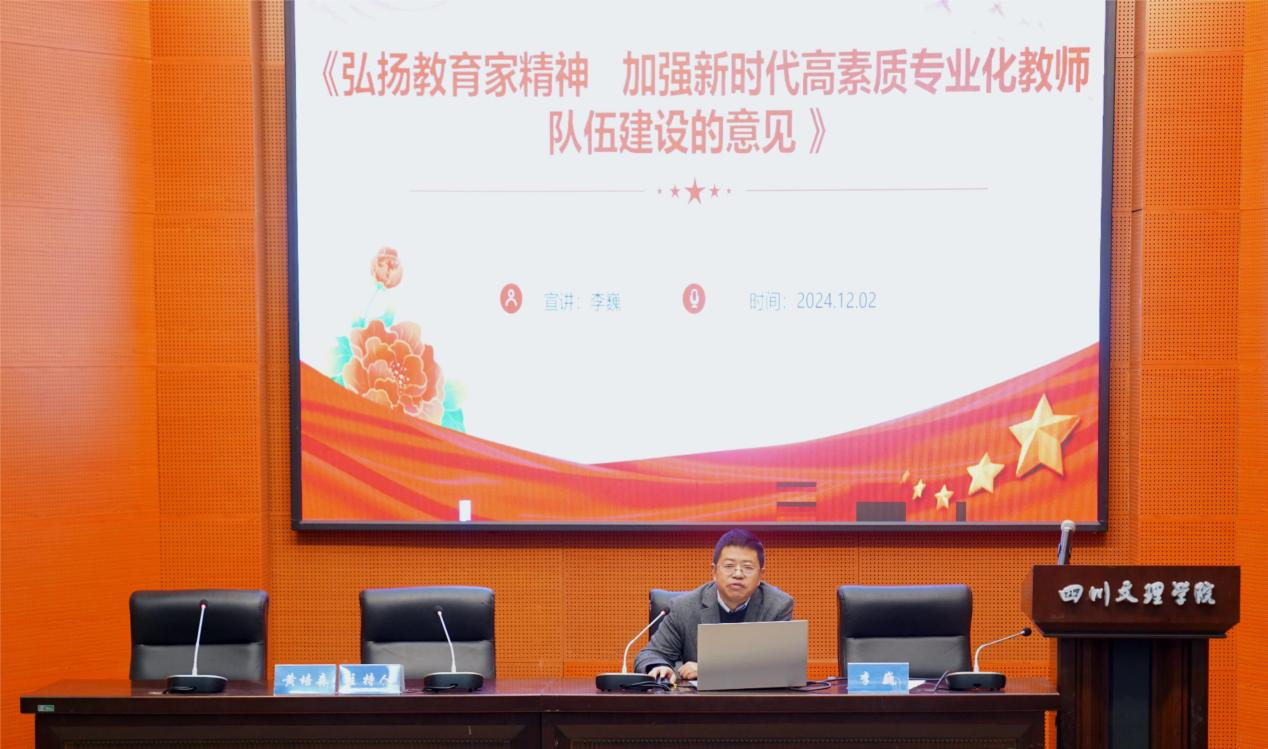 理事论坛从高校管理、乡村教育、教师发展大中小幼一体化三个方面进行分享。高校管理分论坛由内江师范学院教科院院长胡志金教授主持,成都师范学院继教院院长李巍教授点评,西华师范大学初等教育学院院长李雪平教授、成都大学师范学院院长李敏教授、川北幼儿专科学校副校长蒲远波研究员分别作分享。乡村教育分论坛由绵阳师范学院教科院院长王涛主持,西南交通大学希望学院常务副校长马贵平点评,成都师范学院小学教育系主任徐猛、宜宾市叙府实验小学书记牟正香作分享,同时,我校金年会官网博士杨士连、院长黄培森教授为与会教师在2024年国家社会科学基金项目——以“向乡性”为核心特质的乡村教师育人能力生成逻辑与提升机制研究的基础上分享了“乡村教师的向乡性”这一内容。教师发展大中小幼一体化分论坛西南科技大学马克思主义学院蒋平教授主持,川北幼儿师范高等专科学校初等教育学院院长任婧点评,泸州职业技术学院师范学院院长王少军、宜宾市叙州区教学研究与教师培训中心教科室主任易宗勇、宜宾市叙州实验小学校校长黄黎明、宜宾三江新区洗马池幼儿园园长凌英分别作报告。